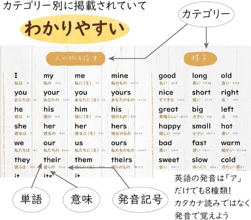 さらに、付属のおまけポスターには発音も覚えられる工夫がされており、英語の語彙力アップにもつながります。